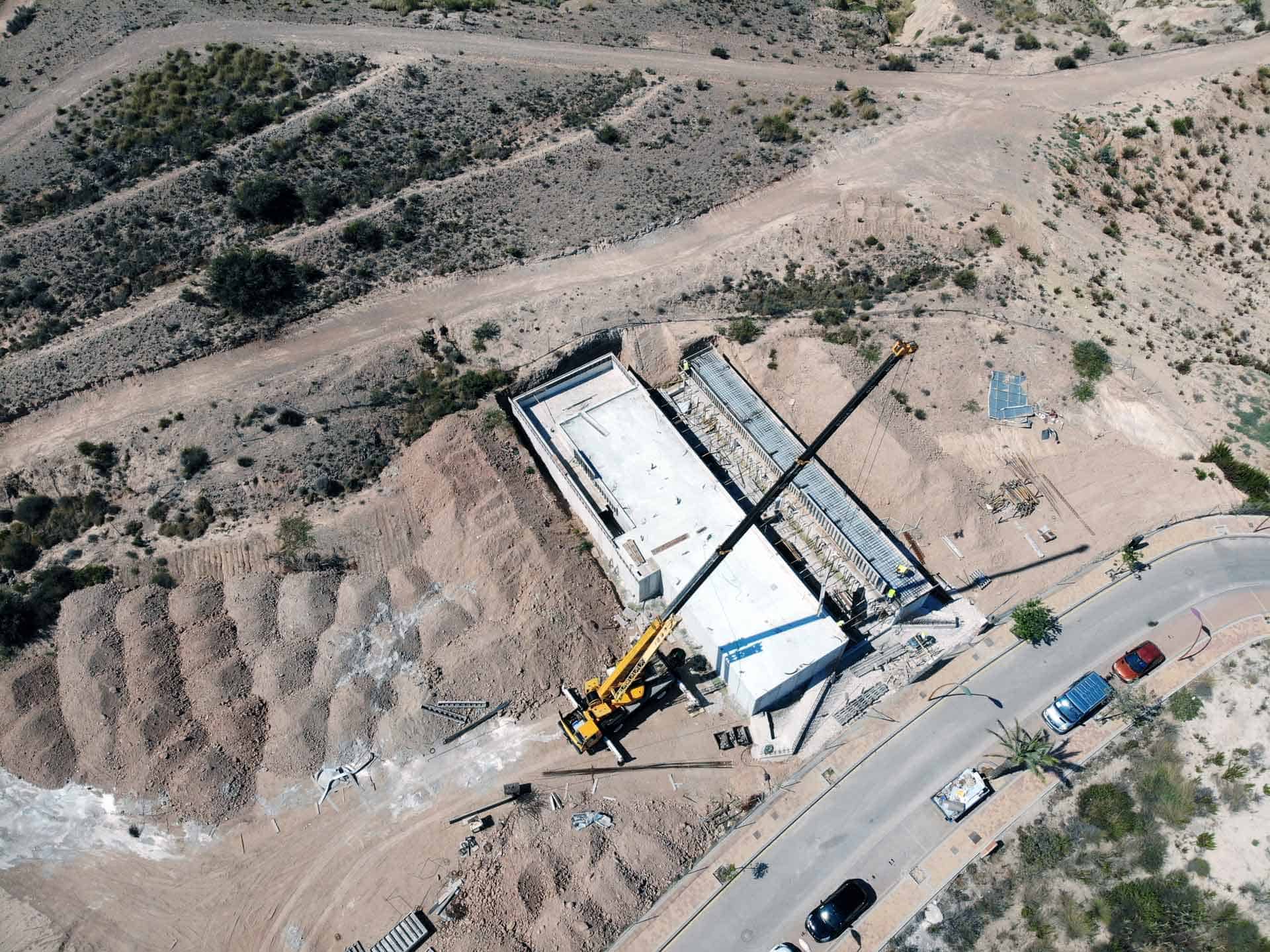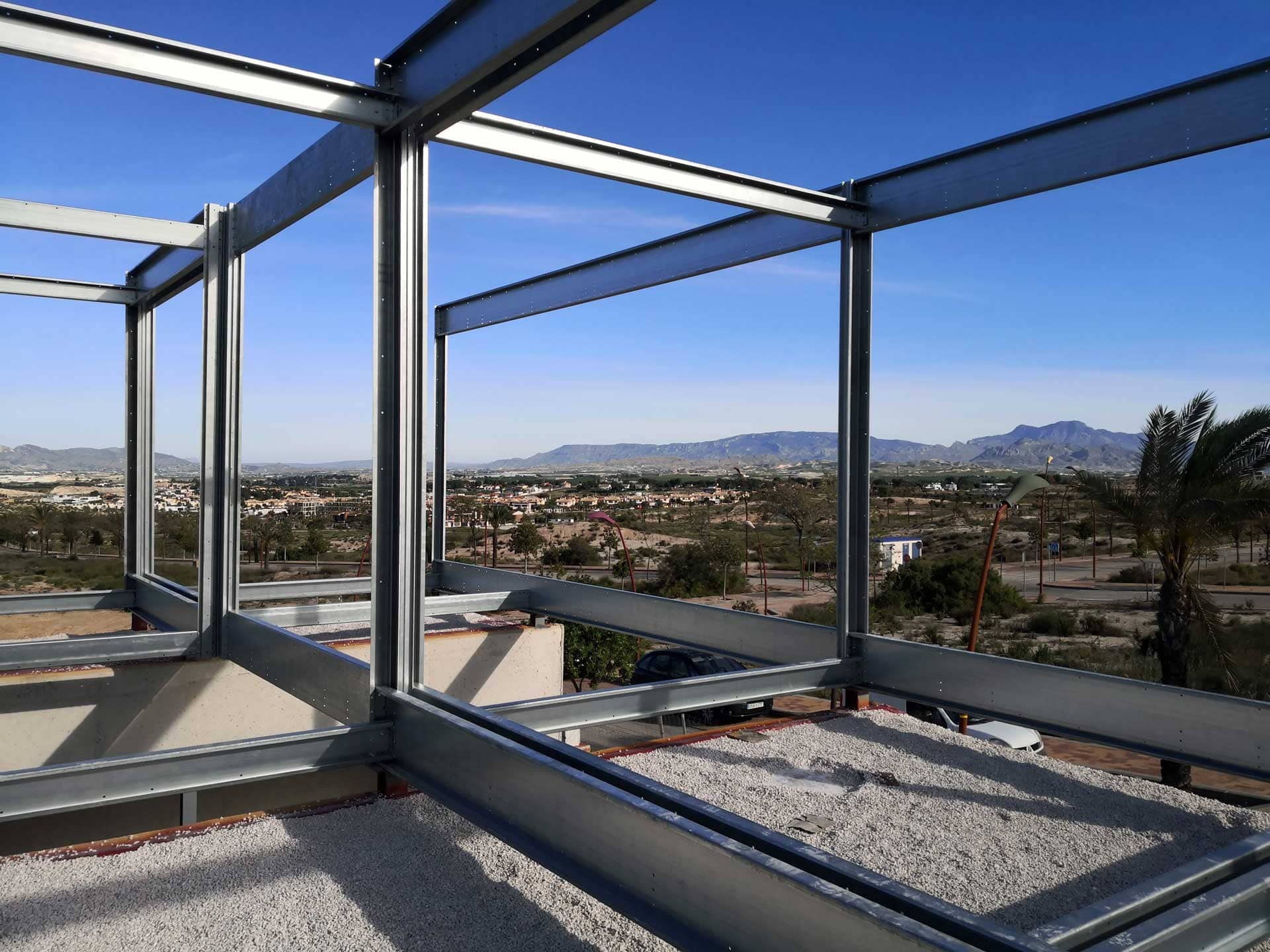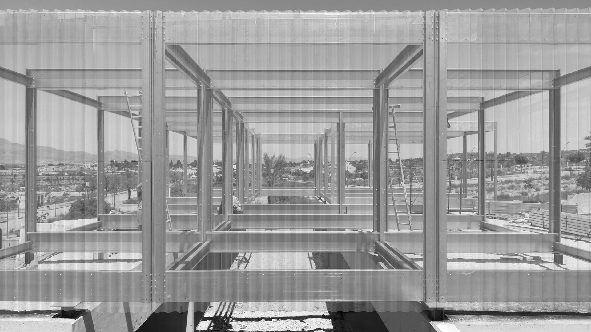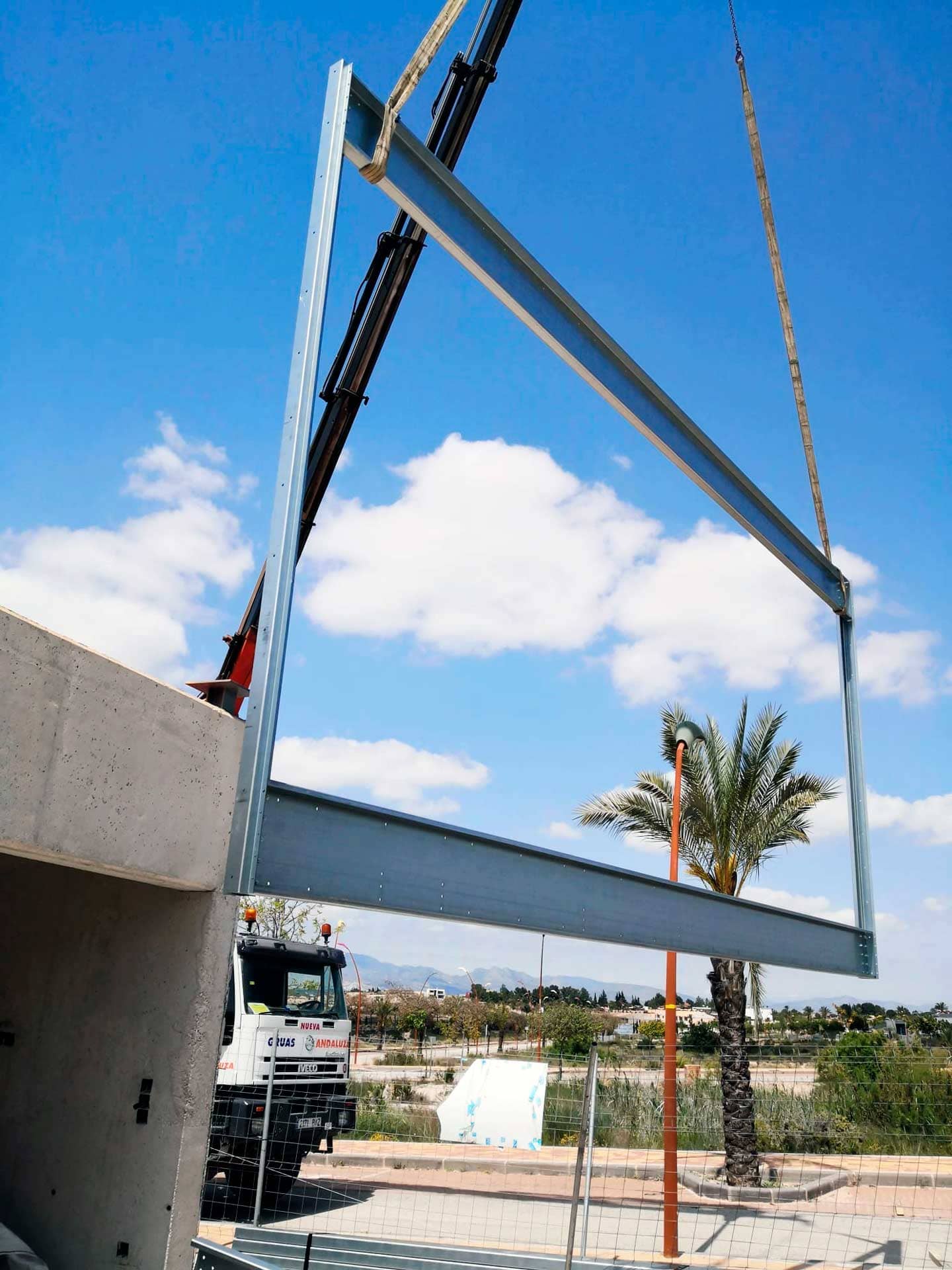 Por lo tanto, se aborda el proyecto a través de dos estructuras claramente diferenciadas. La estructura metálica de la planta primera, con su desarrollo mediante ENSAMBLADO, frente al hormigón de la planta baja, con su desarrollo mediante ENCOFRADO, ayuda al sistema a su adaptación al medio, a la orografía y circunstancias del lugar transformando su producción genérica en un producto específico. A su vez confiere al resultado de la necesaria rigidez y unidad, permitiendo de forma sencilla situaciones complejas para la industrialización y la construcción modular transportable. Su capa superficial mediante la proyección de árido de sílice eliminando así el aspecto industrializado que le confieren los encofrados y dotándolo de un aspecto imperfecto enfatiza así su contraste con el sistema industrializado. Además, con su carácter plástico y formal, contrasta notablemente con el aspecto genérico e ilimitado de SISTEMA LaM. De esta forma, el proyecto adquiere una cierta dualidad relacionando en un mismo espacio dos diferentes sistemas de fabricación: ENCOFRADO y ENSAMBLADO.