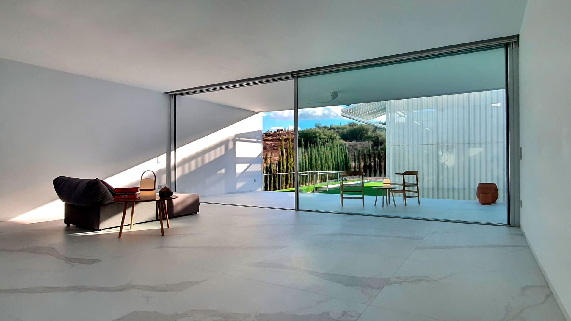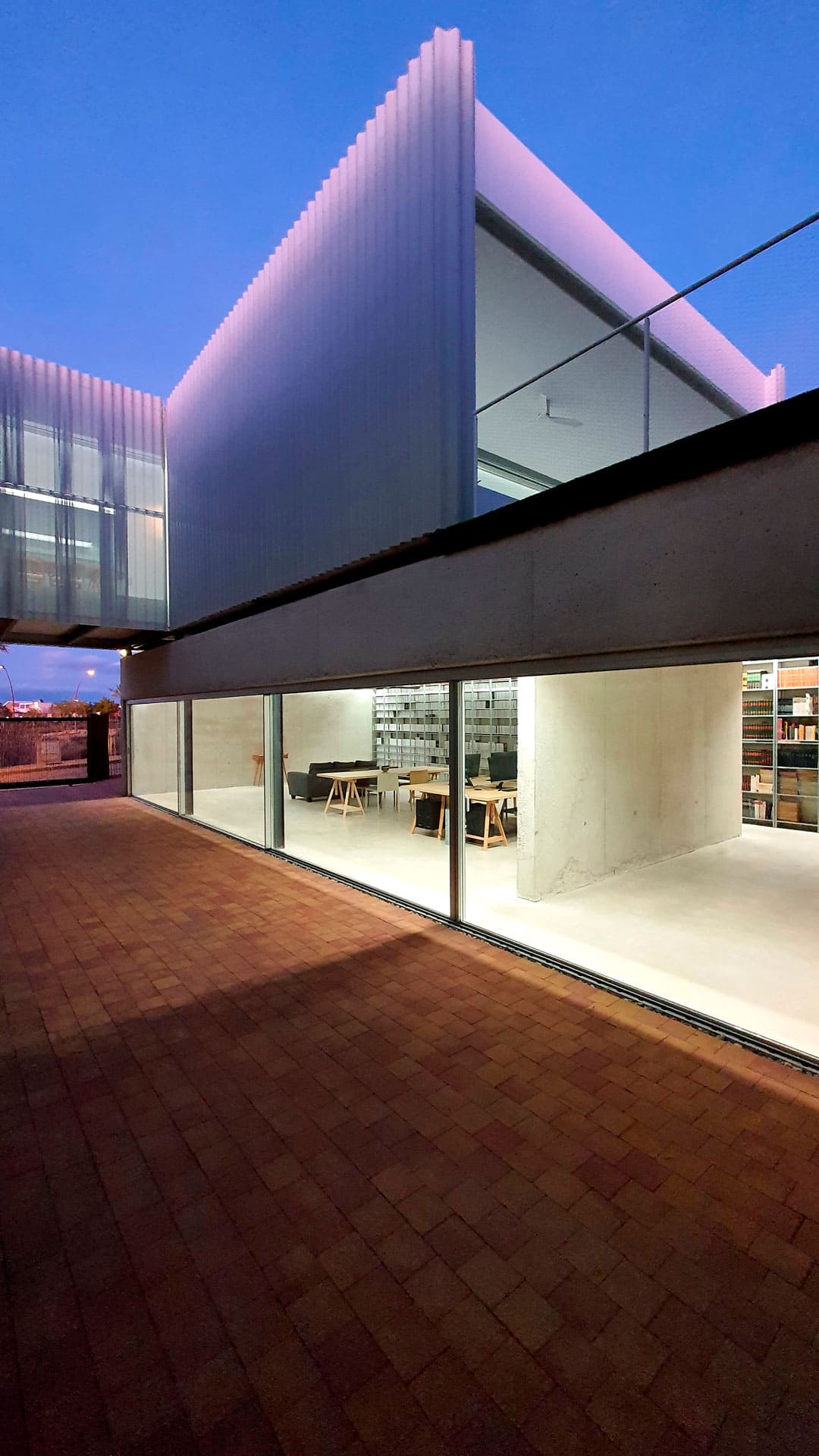 La zona de noche se abre hacia patios que conectan con el jardín y la piscina de la casa, si es necesario. Desde el punto de vista visual, esta conexión es constante, mientras que desde el punto de vista físico, es posible cuando se desea. Estos patios ofrecen no solo privacidad y seguridad, sino también control solar, al igual que el resto de las ventanas ofreciendo también con su apertura que la casa pueda recorrerse sin llegar a un fin; esto se consigue gracias a las relaciones externas e internas propias del proyecto.