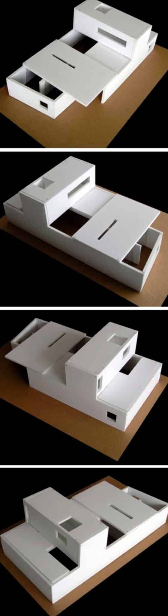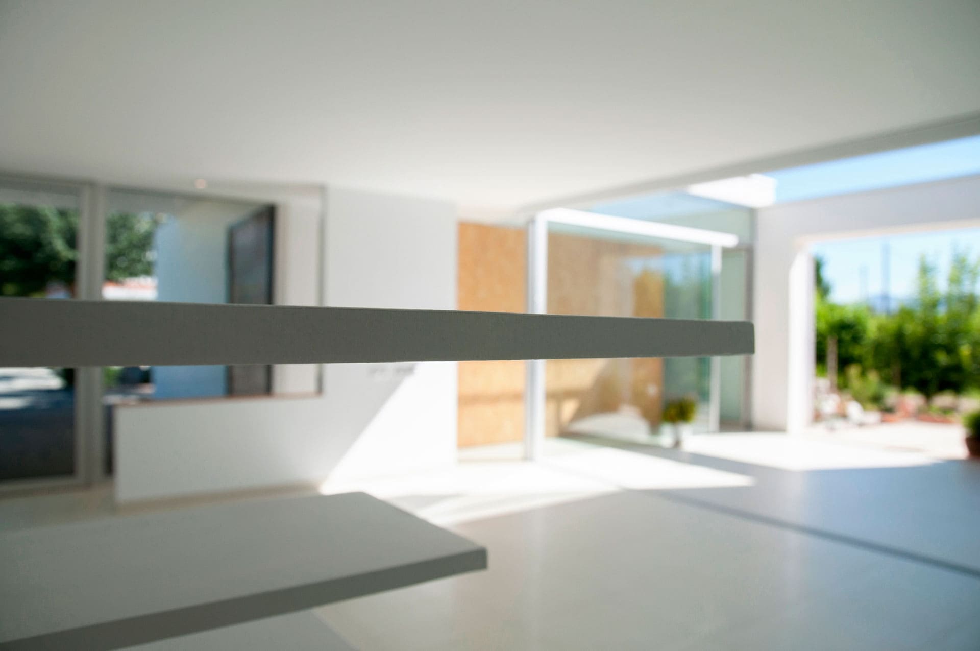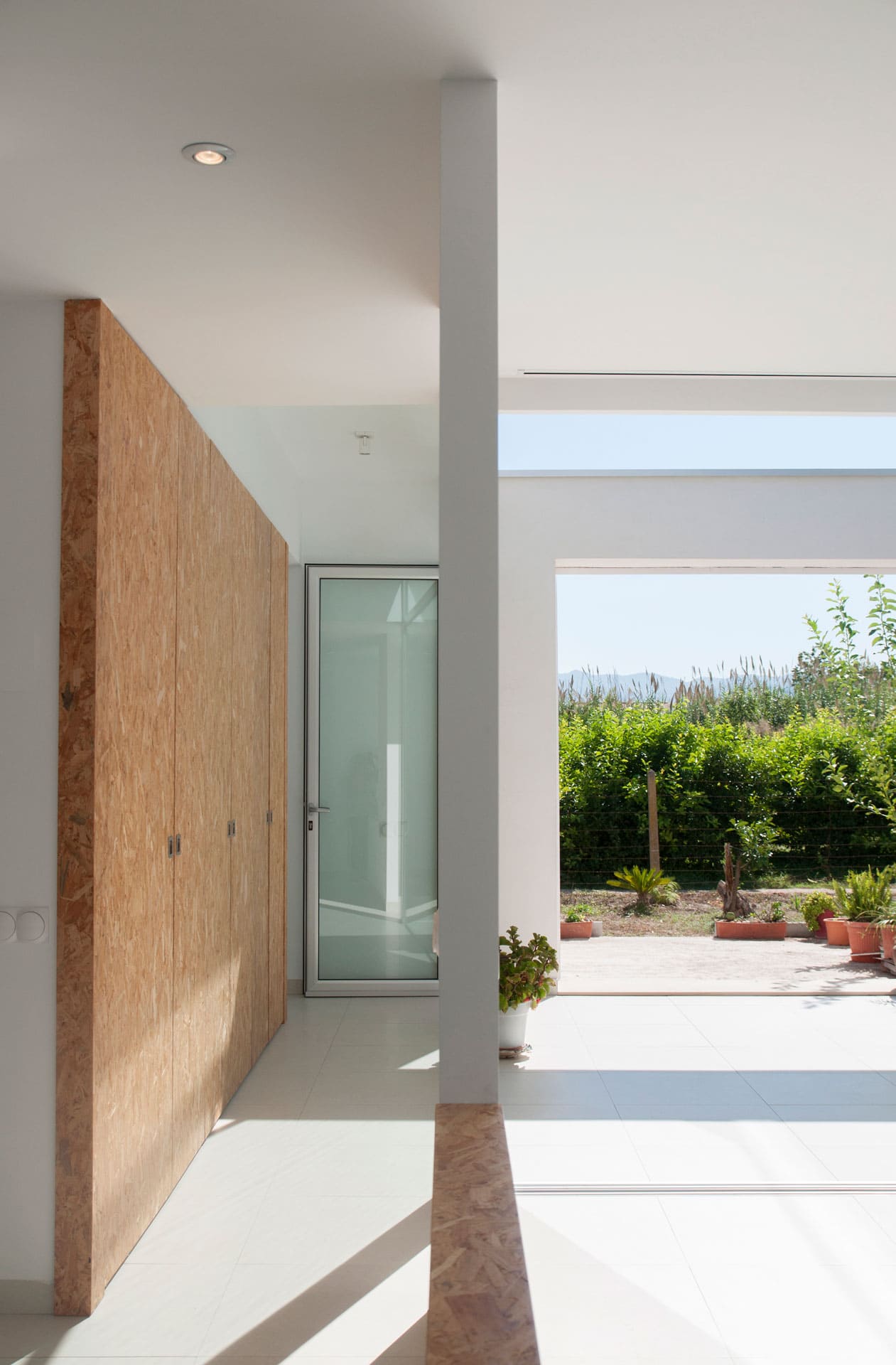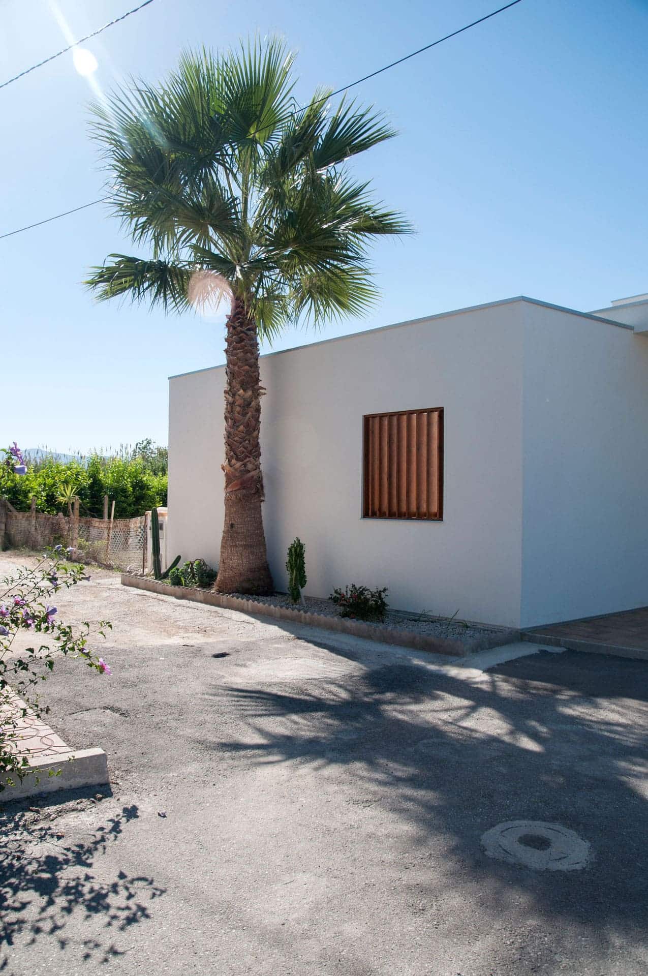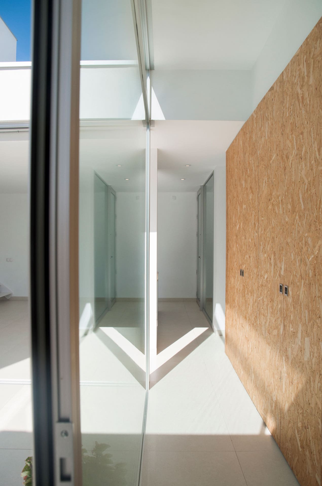 Dada esta forma de afrontar el trabajo, se obtuvo un resultado hermético e introvertido, lo que nos daba respuesta a una condición de seguridad necesaria en el entorno donde se ubica, y también nos ayudaba a entender cómo una parcela de dimensiones reducidas podía relacionarse con un entorno paisajístico huertano muy rico; esto se hace a través de la contemplación que se da en el volumen superior como si de un mirador se tratase.