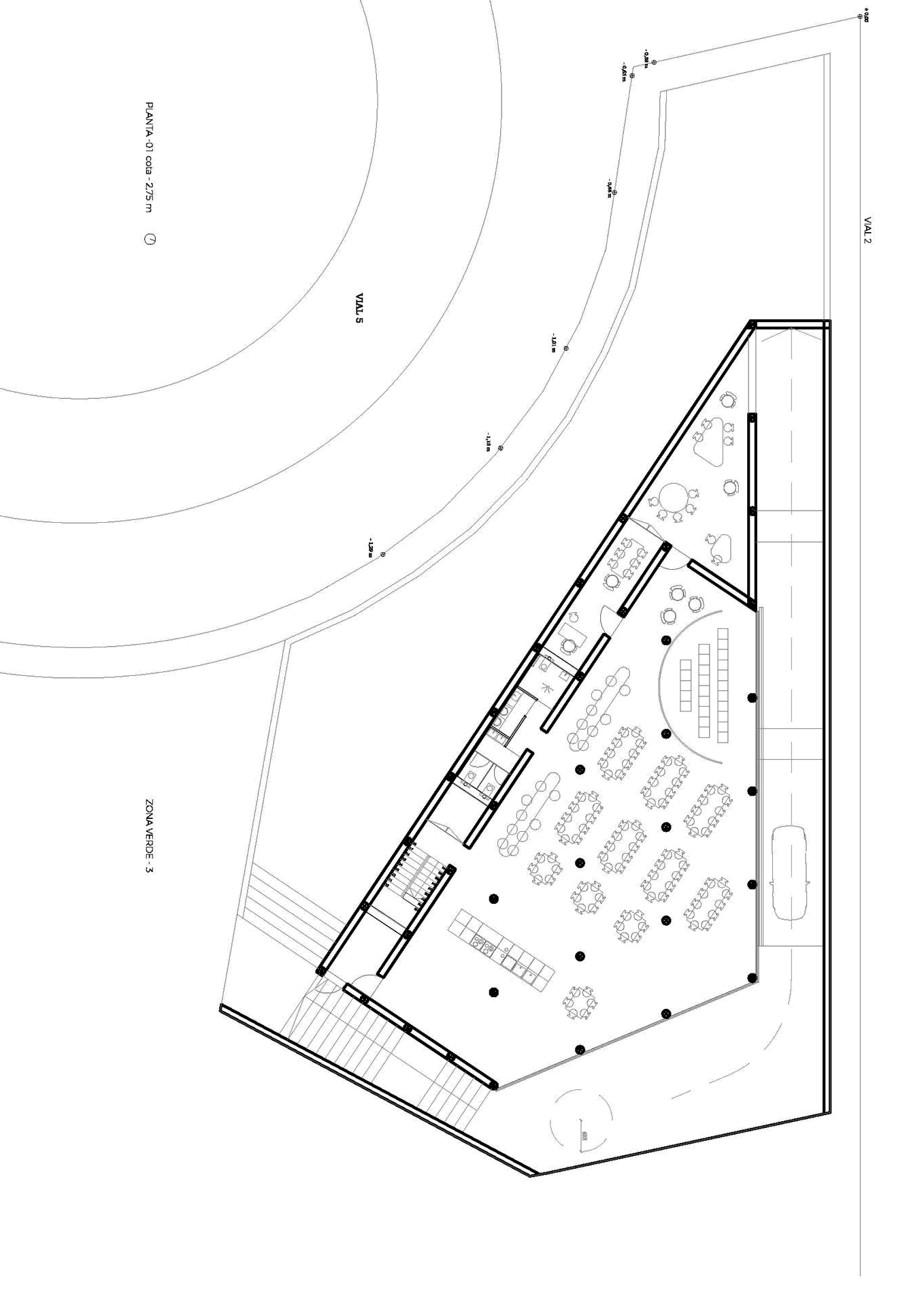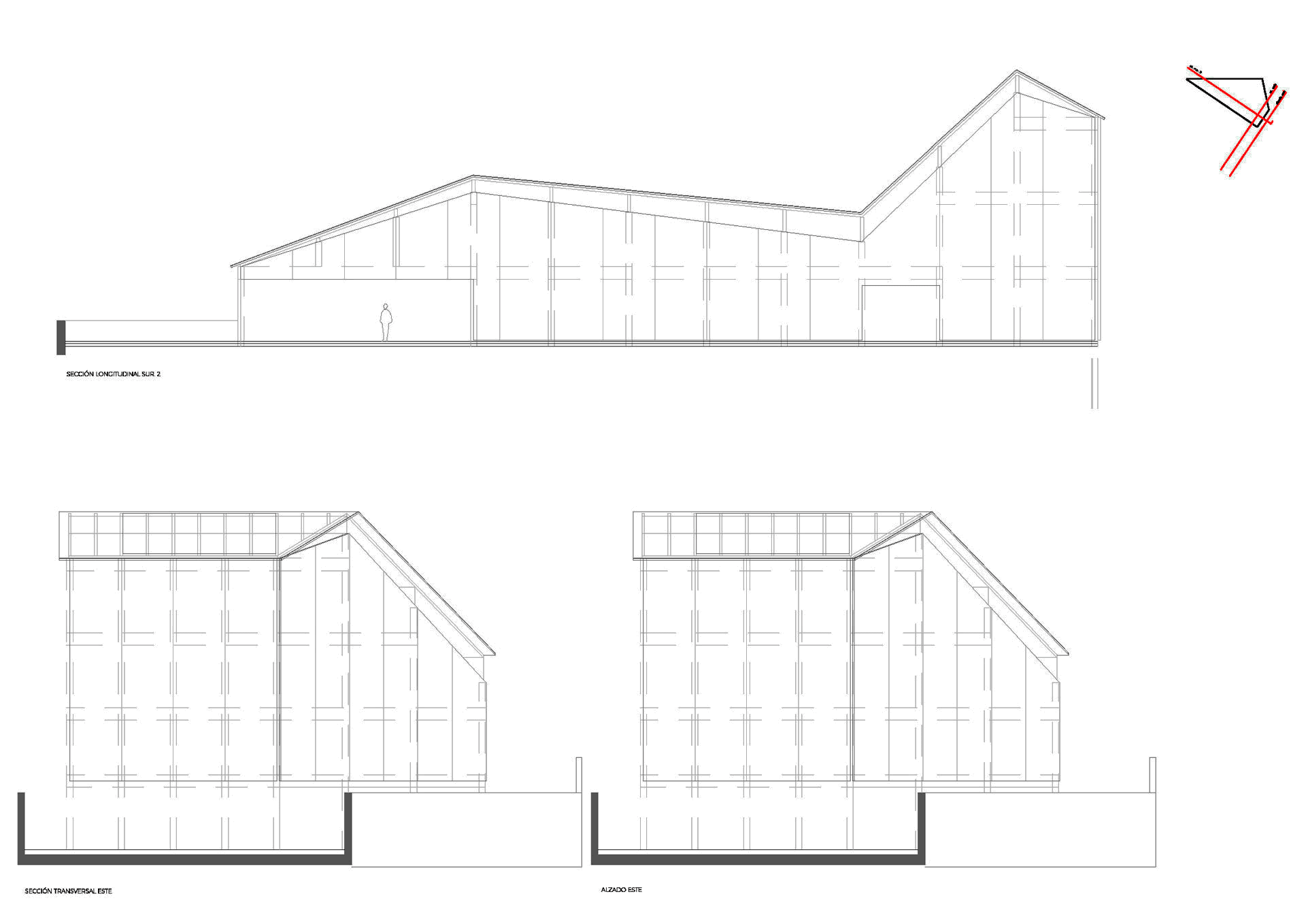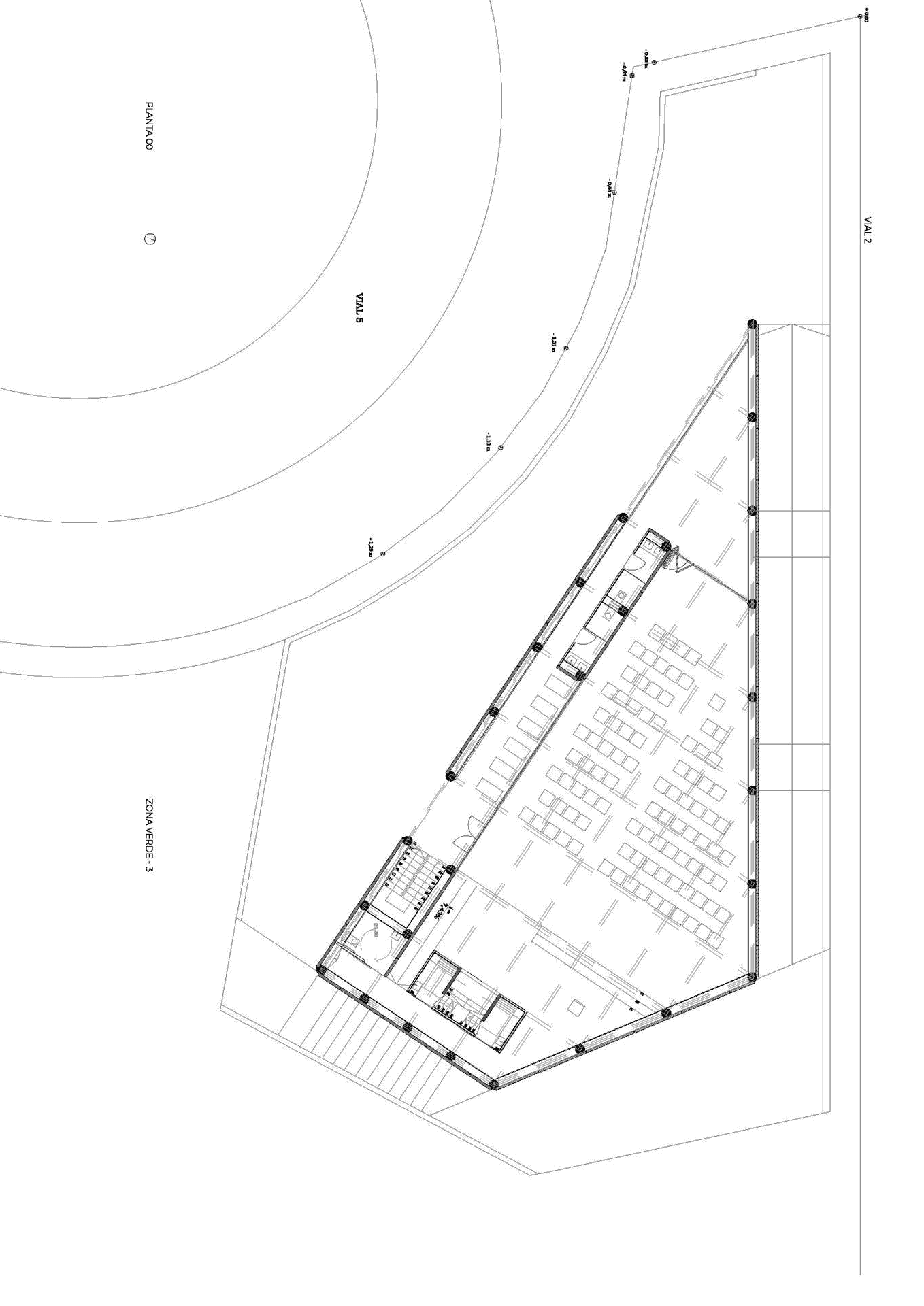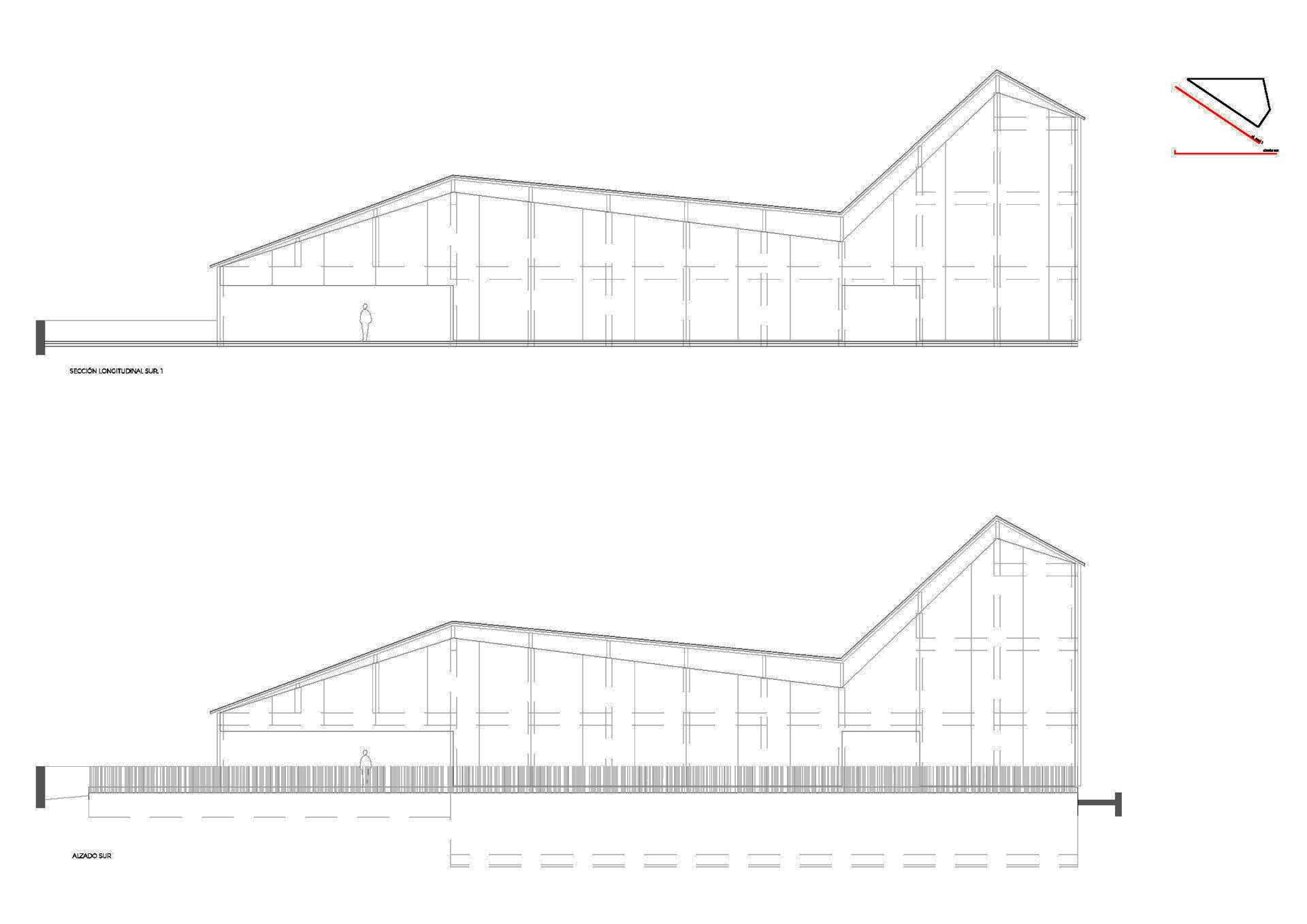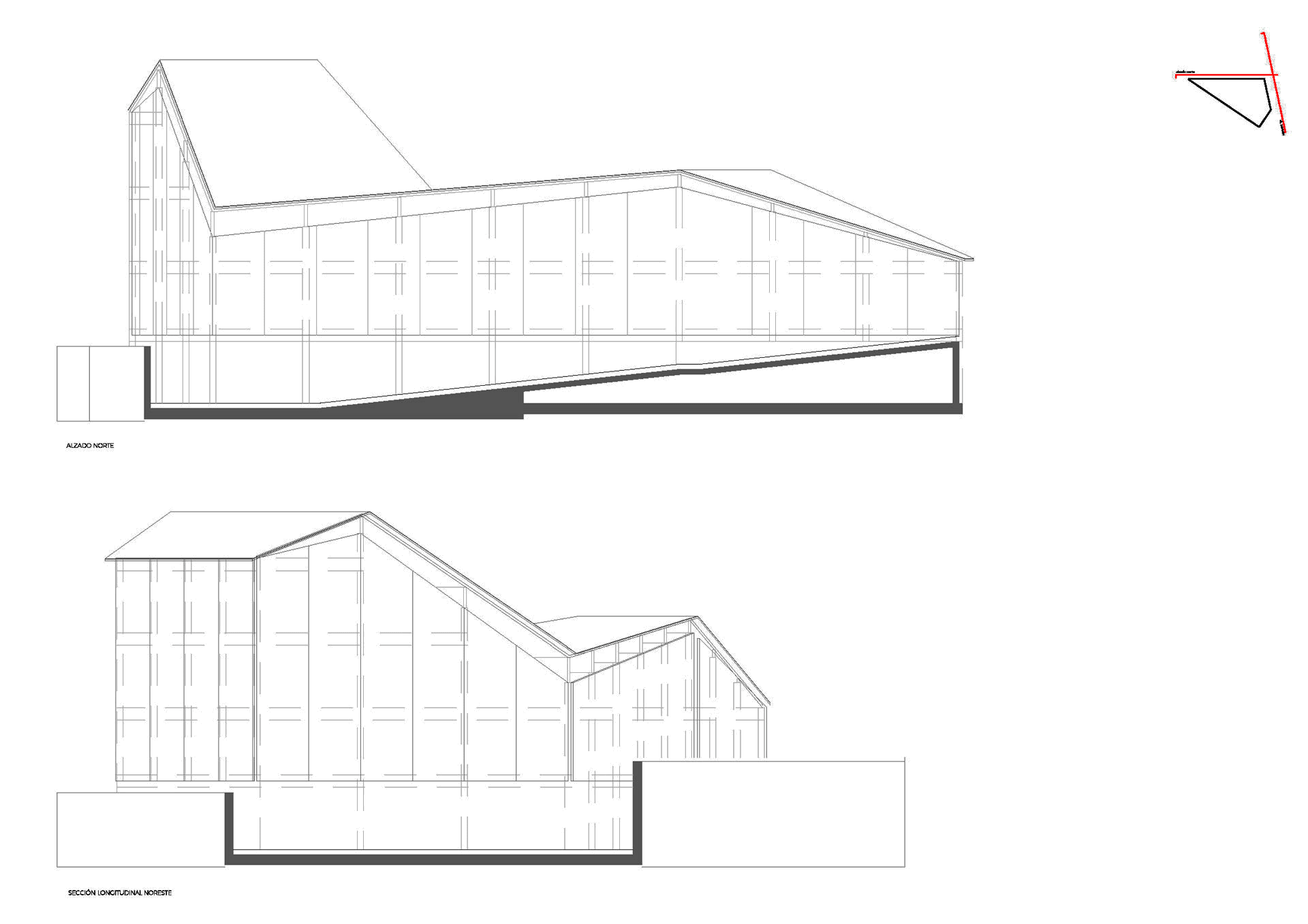 La forma de la parcela va a condicionar en gran parte la geometría del proyecto siendo ésta una línea que se pliega, tramo a tramo, para encerrar una gran nave en la planta de acceso al edificio.