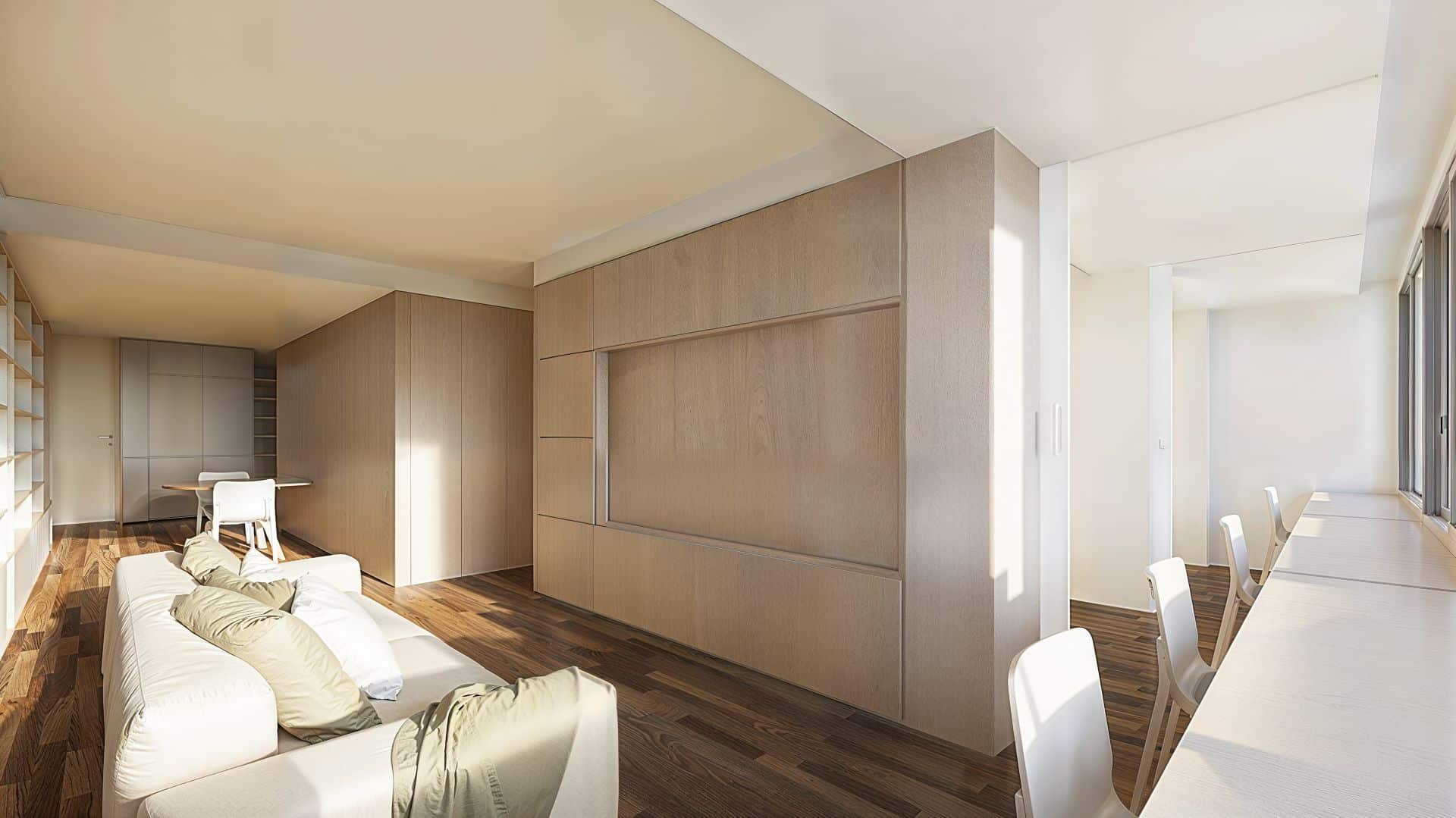 Este trabajo inicia un proceso de reflexión de cómo dotar a un apartamento con un programa ortodoxo y una superficie limitada para éste, suficiente fluidez y flexibilidad espacial, consiguiendo una transformación y dependiendo ésta de las diferentes situaciones de hábitat adaptándose al tiempo. Los cambios no sólo se dan a largo plazo donde son más fáciles de percibir sino también a corto donde las posibles situaciones de reunión son evidentes.