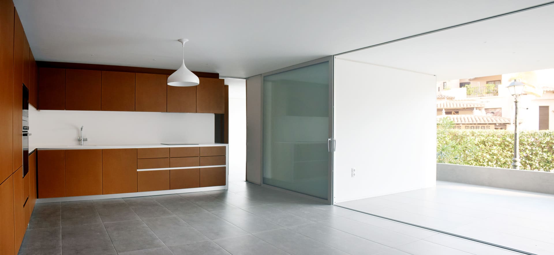 La caja será el elemento protagonista de la escena, ya que la ubicación de la vivienda en la planta baja de un bloque de grandes dimensiones lo asemeja a un escenario visto desde el jardín. Los espacios generados alrededor de ella serán versátiles, pudiéndose adaptar a diferentes momentos y haciendo del porche el protagonista ya que en éste será donde más vida se podrá hacer durante la época estival.