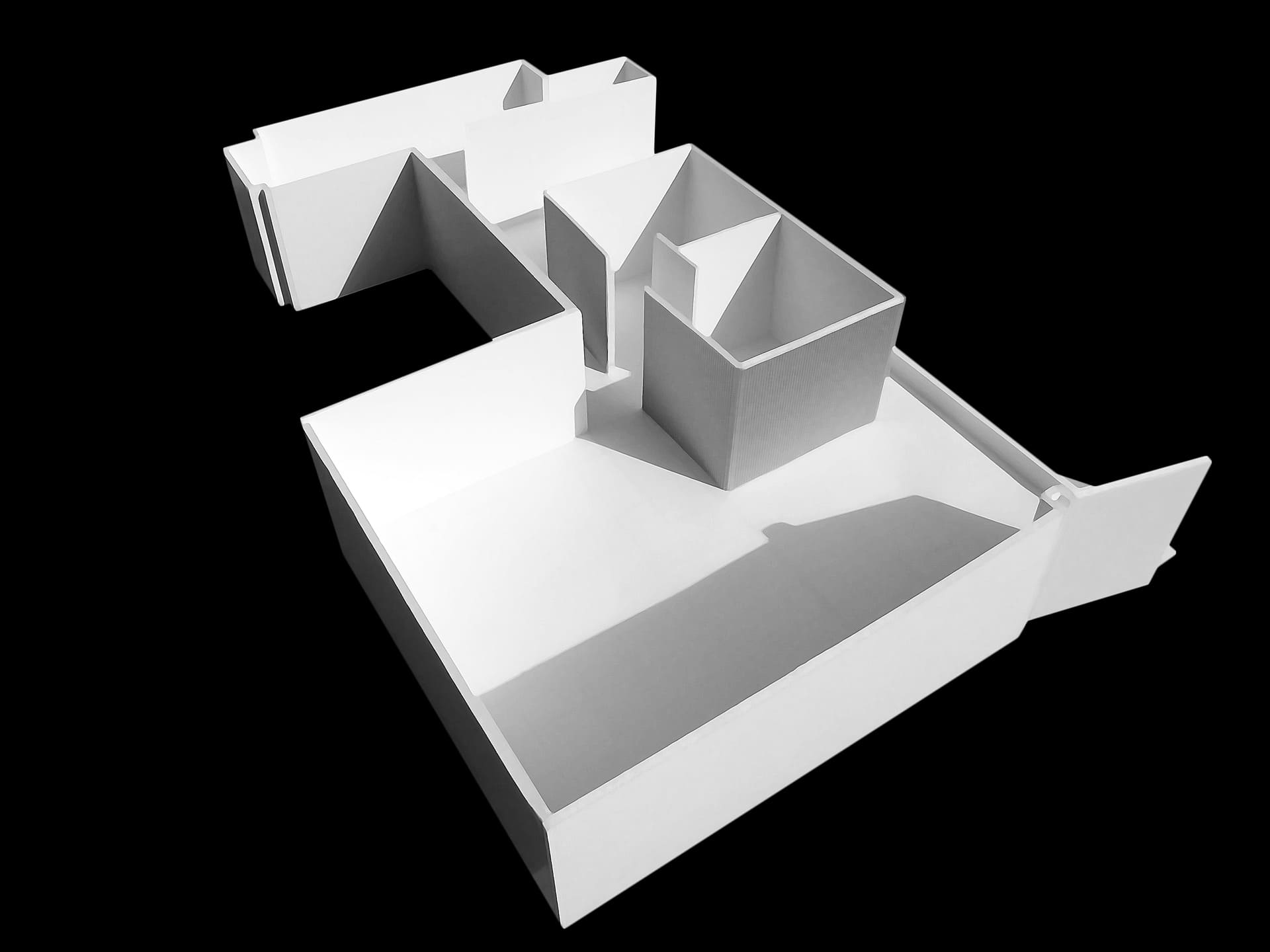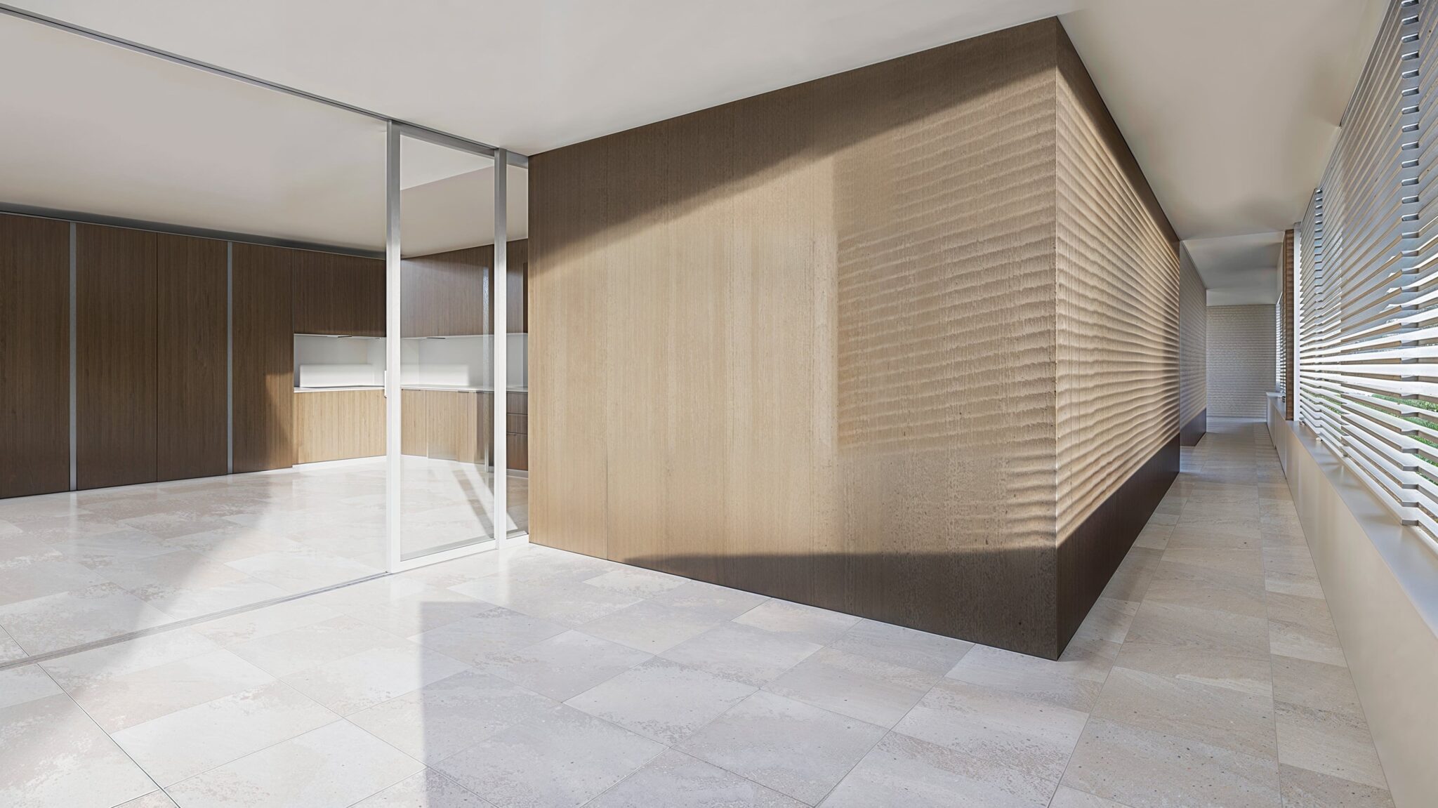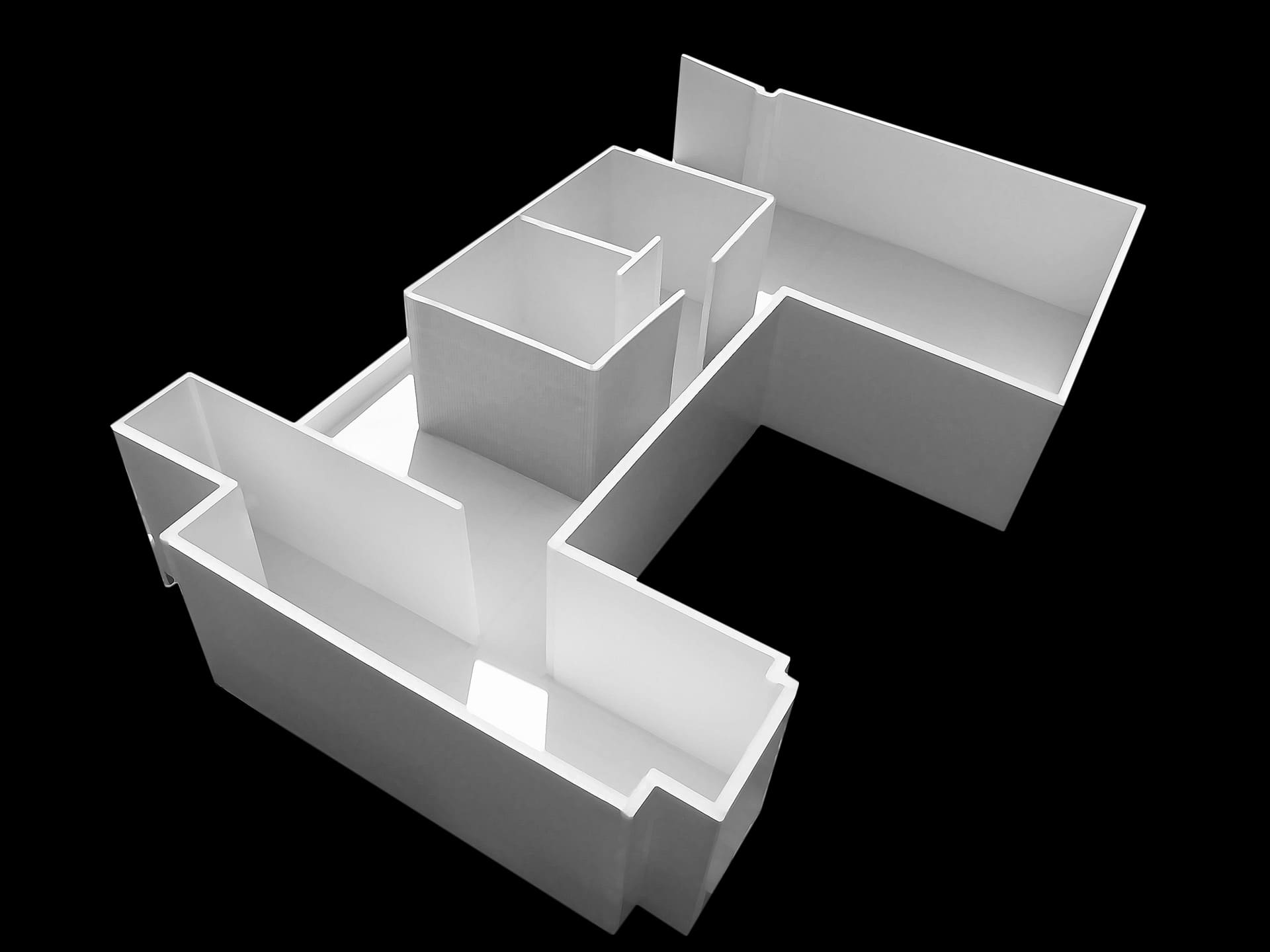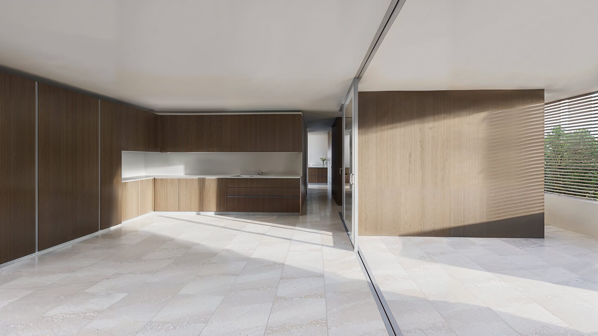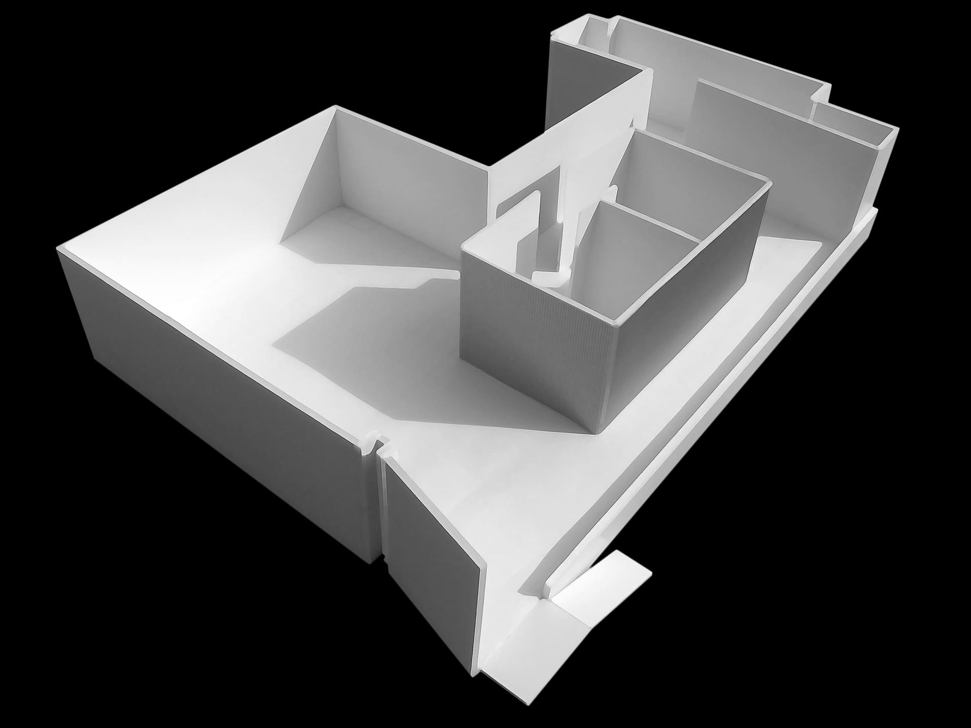 La construcción de una caja central donde se alojan dos de los tres dormitorios será la estrategia de la propuesta, permitiendo así una circulación fluida por toda la vivienda y resolviendo la parte más privada del programa. Este elemento acoge, en sus espesores, ventanas y puertas, lo que permite diferentes propuestas de apertura, dando lugar a una necesaria dilatación del espacio interior y transformando el salón-estar en un gran porche.