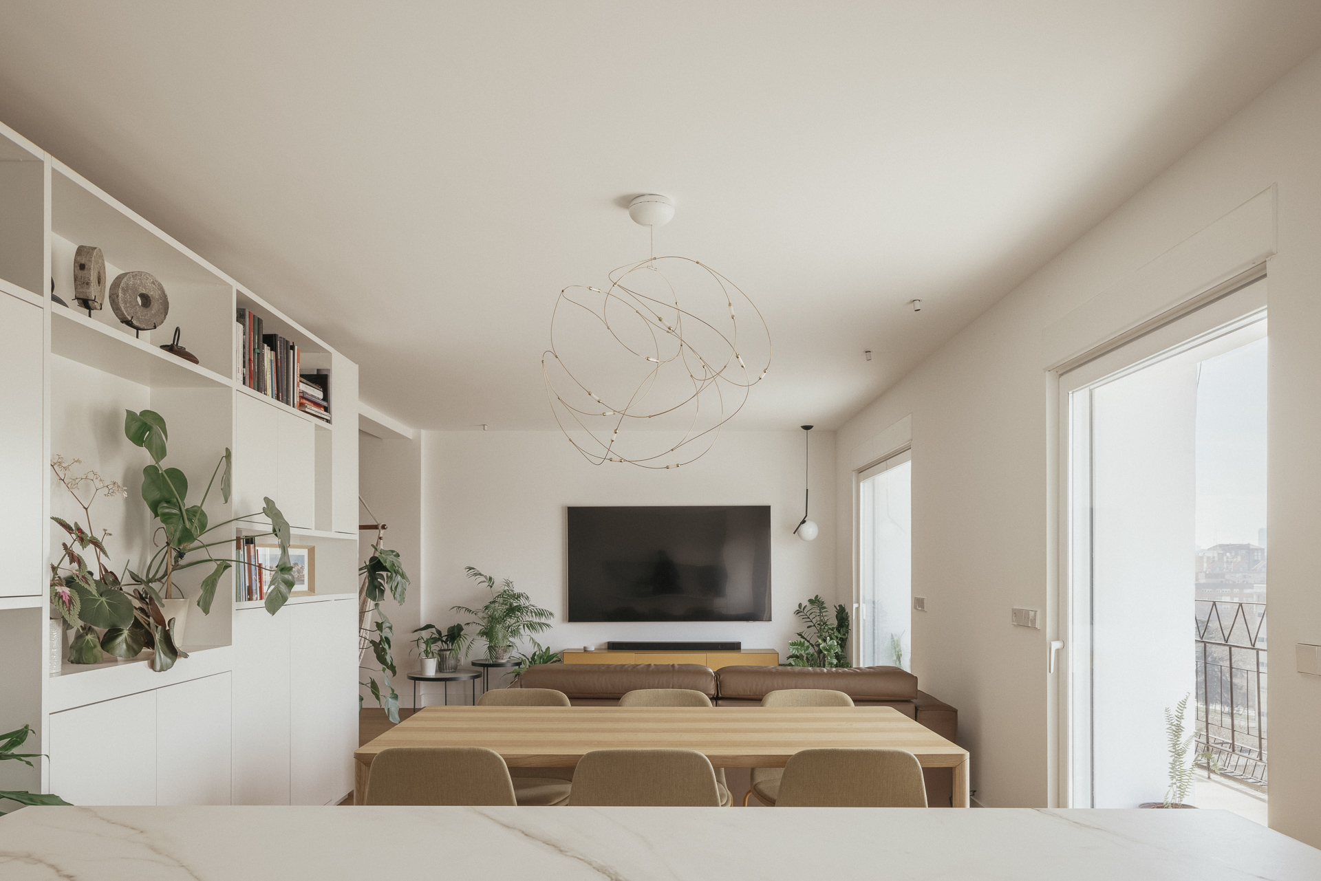 La carpintería lacada en blanco y los detalles en madera de roble refuerzan la sensación de luminosidad y equilibrio, mientras que los nuevos cerramientos garantizan un óptimo aislamiento térmico y acústico, mejorando notablemente el confort interior.