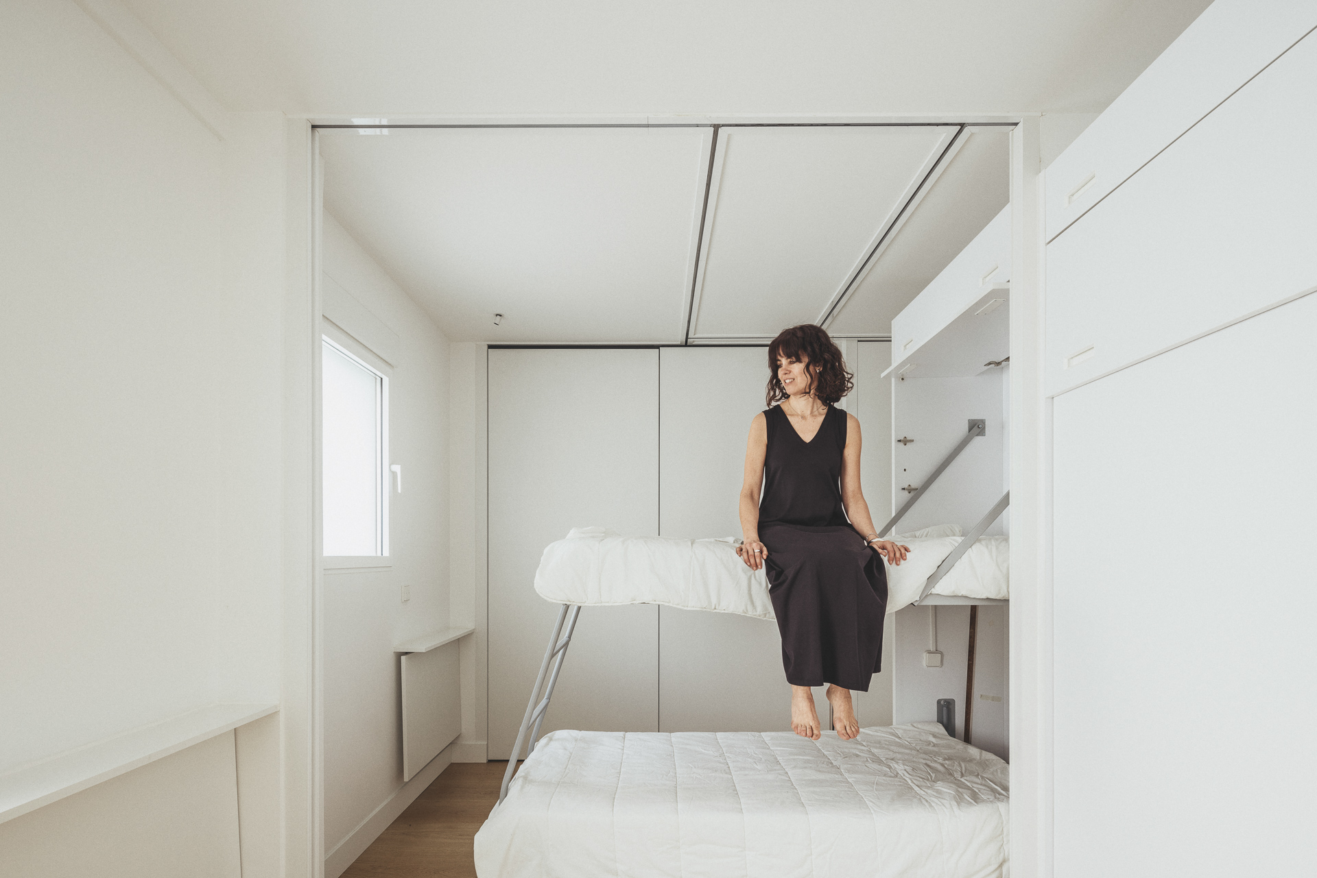 La zona de noche se articula en torno a tres dormitorios concebidos con un enfoque flexible: pueden funcionar como una única estancia amplia o subdividirse en dos o incluso tres espacios, adaptándose a visitas, momentos de ocio o necesidades puntuales. Yoga, lectura, creación artística o descanso: cada rincón está pensado para acompañar el estilo de vida cambiante de sus habitantes.